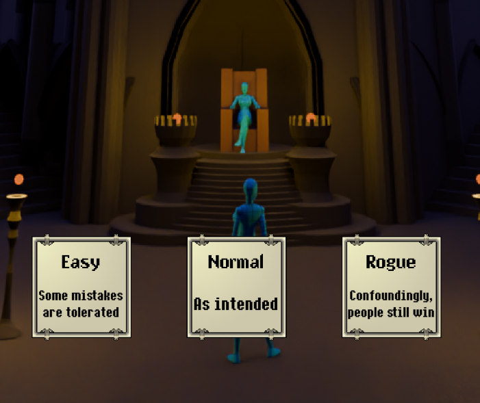 This crop of completely new players gave a great opportunity to revisit our onboarding / tutorial experience, as well as opportunities to revise our UI, as well as an opportunity to talk about 100 Rogues' goals with its difficulty settings.